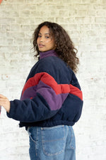 Craquez pour la doudoune en velours multicolore, un modèle à la fois cosy et résolument tendance. Son col officier haut et sa fermeture zippée intégrale assurent confort et protection. Avec ses deux poches latérales pratiques, elle apporte une touche design et décontractée à tous vos looks d’hiver.