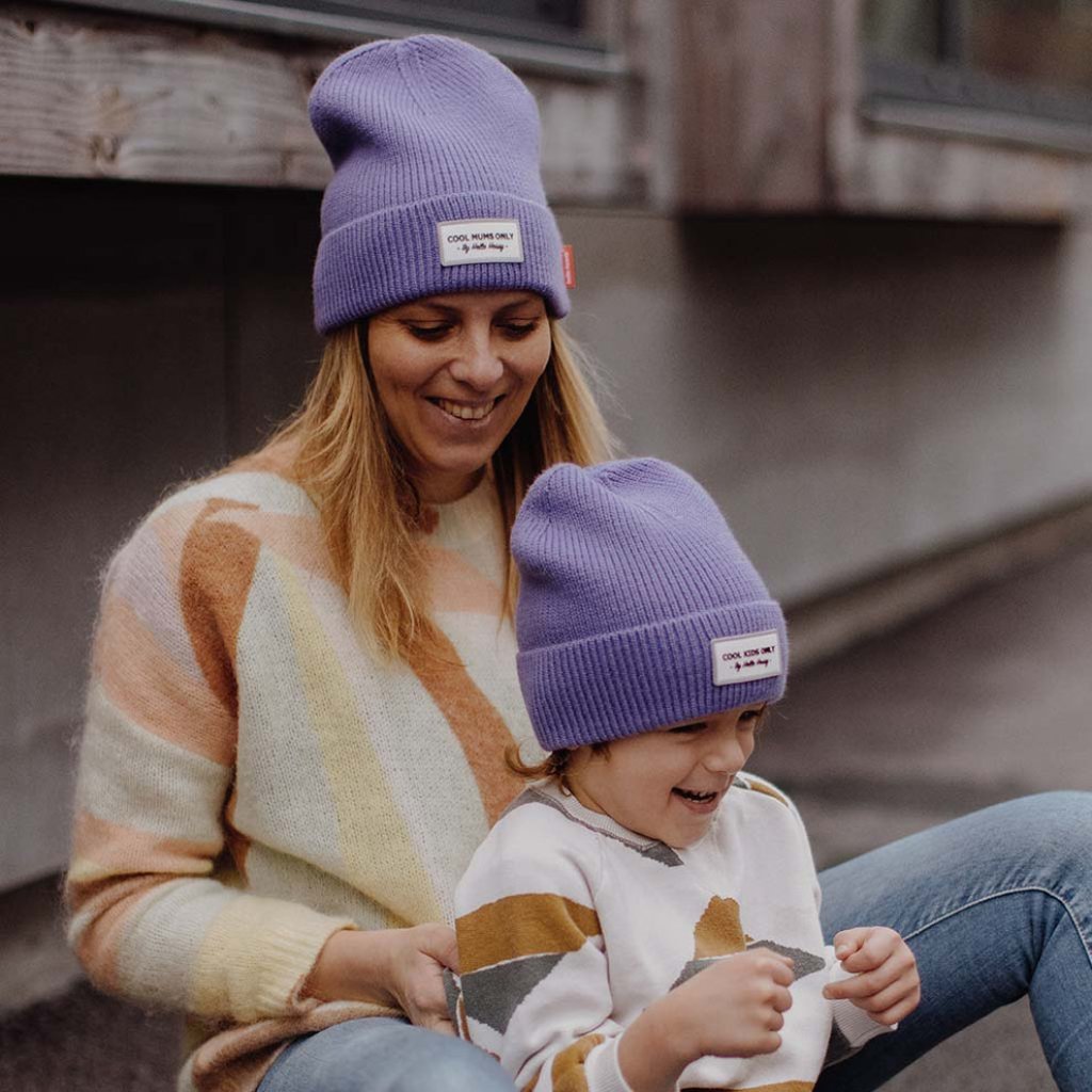 Le Bonnet pour enfants et bébés Pop Purple de Hello Hossy est un modèle disponible en matchy-matchy mère-fille / mère-fils : Cool Mums Only, Cool Kids Only. Bonnet coloré, avec du caractère, il mettra de la couleur dans vos journées froides d'hiver. Parfait pour un cadeau maman-fille ou maman-garçon !