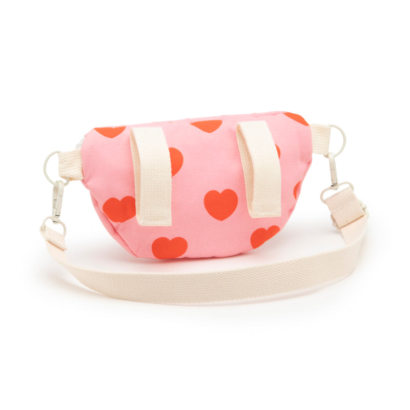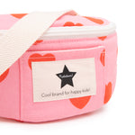 Craquez pour le Baby Sac Banane rose à cœurs rouges, l’accessoire fun et pratique pour vos petits aventuriers ! Un fond rose tout doux et des cœurs rouges qui dansent pour ajouter une touche d’amour à chaque sortie.
