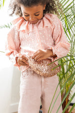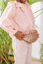 Très tendance, ce sac banane apporte la touche glam avec son tissu en glitter rose, parfait pour twister les tenues sages et ranger ses petits trésors !