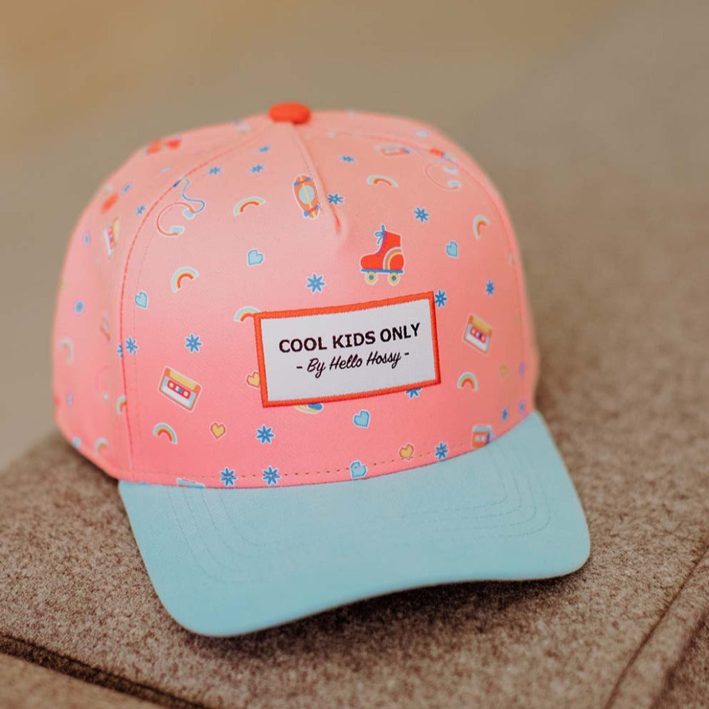 Les casquettes les plus cool sont de retour cet été !"cool kids only" l'inscription que l'on retrouve sur toutes casquettes.  Le modèle Rollers est bien trop cool avec ses dessins de rollers et sa couleur rose. Elle illumine la bouille de nos kids ! C'est une casquette parfaite à porter et à offrir.