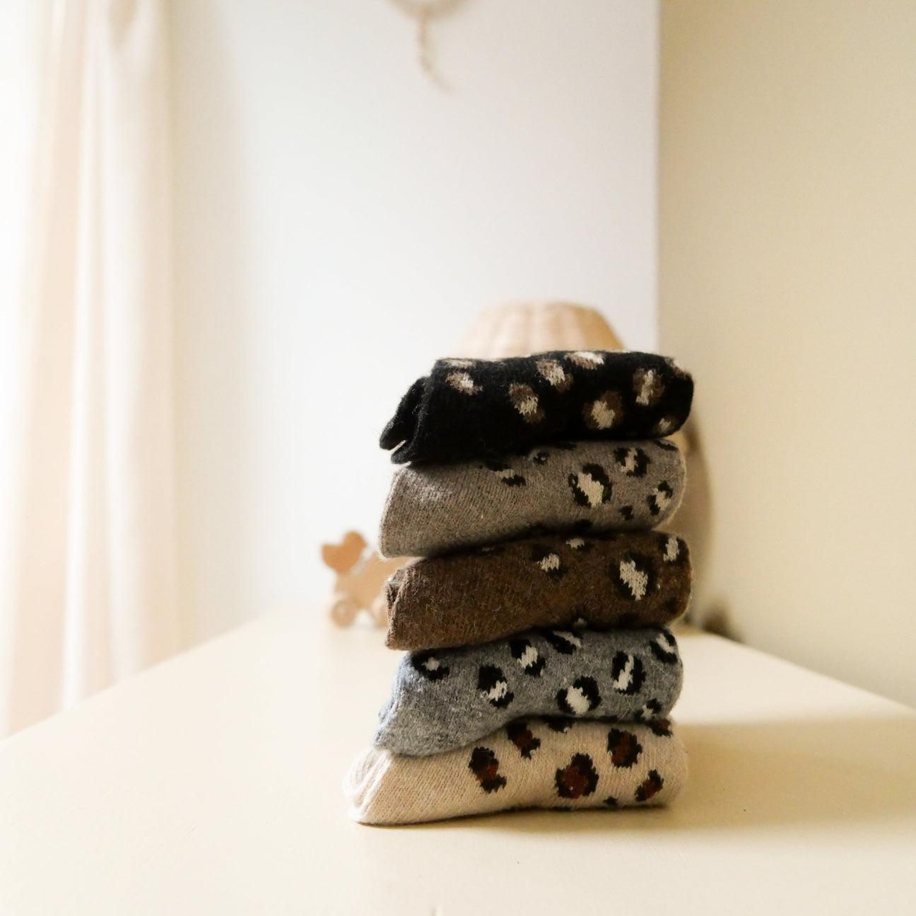 Chaussettes femme léopard, imprimé phare de la saison dont on ne se lasse pas... Ces chaussettes seront parfaites pour chiller ou à emporter dans votre valise maternité.