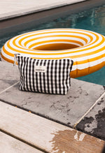 Trousse légère et pratique en coton vichy noir, idéale pour organiser les petits essentiels du quotidien.