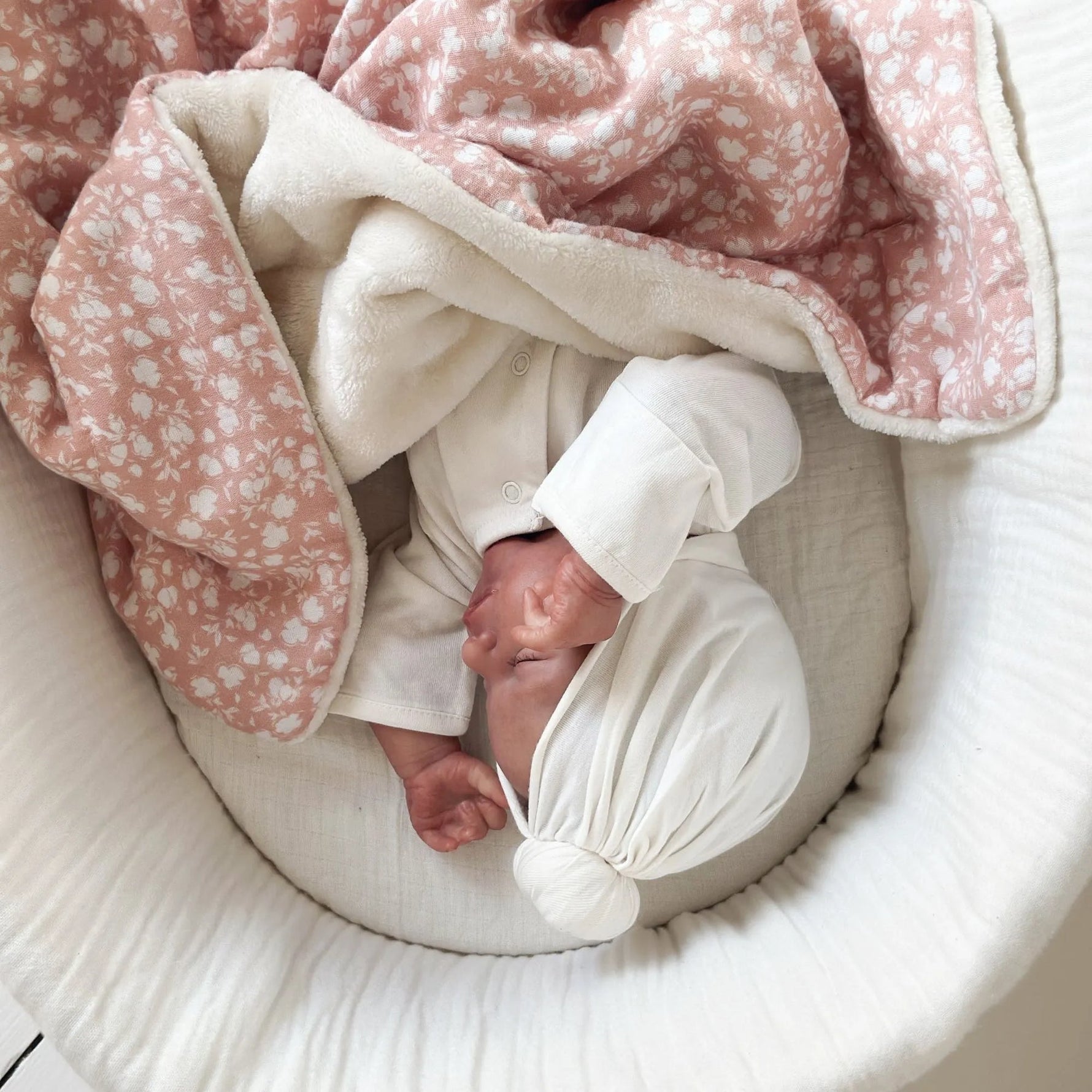 La couverture Snuggle Bloom Blush Bonjour Little allie douceur et confort avec son côté en gaz de coton imprimé et son verso en velours tout doux certifié Oeko-Tex. Moelleuse et chaleureuse, cette couverture est le cadeau parfait pour une naissance, apportant une touche douce et élégante grâce à son imprimé Bloom Blush.