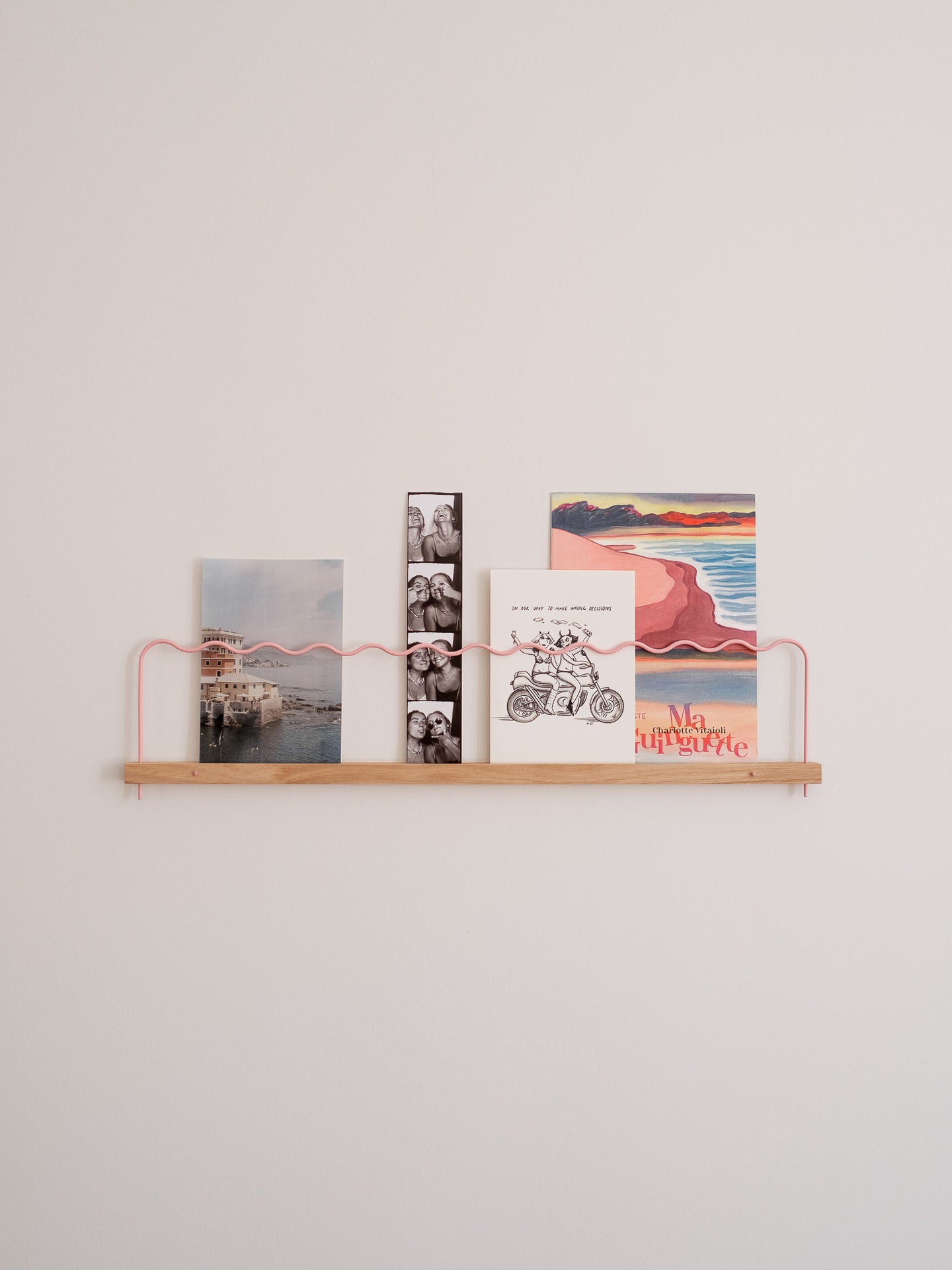 Exposez vos photos, illustrations, cartes postales et polaroids en toute simplicité. La hauteur de la barre maintient vos souvenirs en place, et la fixation avec des clous est ultra facile.