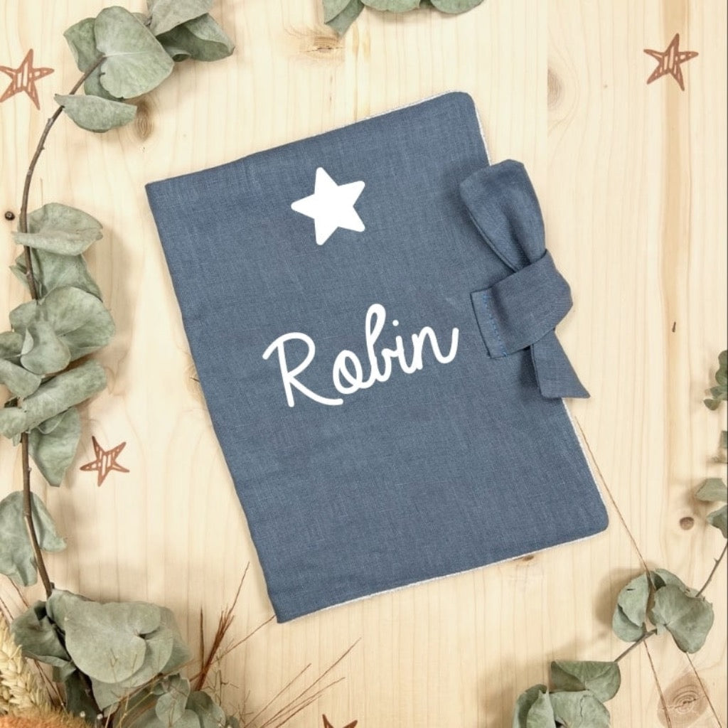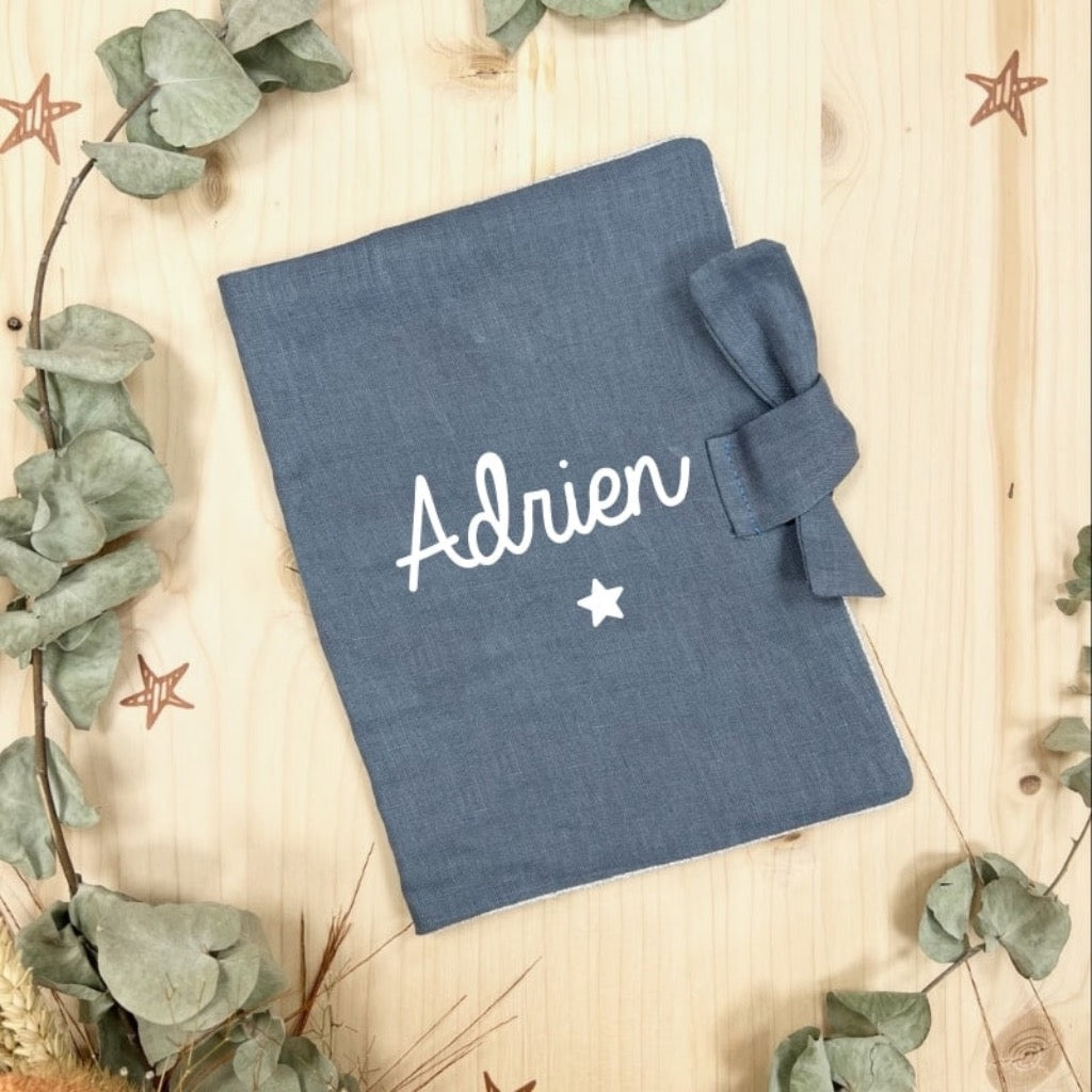 Protège Carnet de Santé Personnalisable Lin Bleu Canard - Oh La La Paris