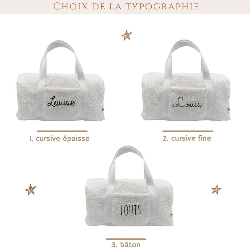 Le sac week-end qui servira aussi bien de sac à langer, que de sac de voyage pour une escapade le temps d’un week-end. Ce sac peut être personnalisé avec un prénom. ll fera un parfait-cadeau unique et personnalisé