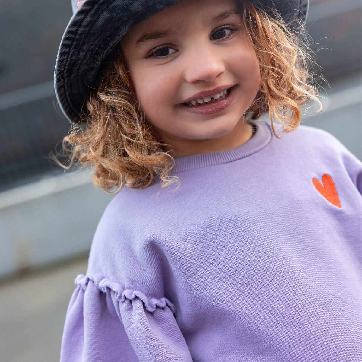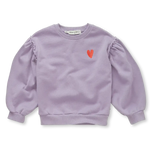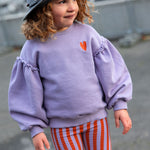 Ce sweat-shirt fille couleur lavande est décoré d’une broderie cœur sur la poitrine et de manches volumineuses plissées pour une touche féminine. Fabriqué en coton biologique avec un intérieur brossé, il est doux, confortable et plein de charme.