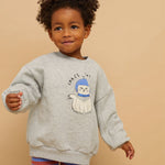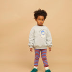 Ce sweat-shirt gris chiné est fabriqué en coton biologique brossé pour un toucher tout doux. Il est décoré de l’imprimé original « Space Cat », créé en collaboration avec Gisèle et Rose. Une pièce unisexe, ludique et facile à assortir.