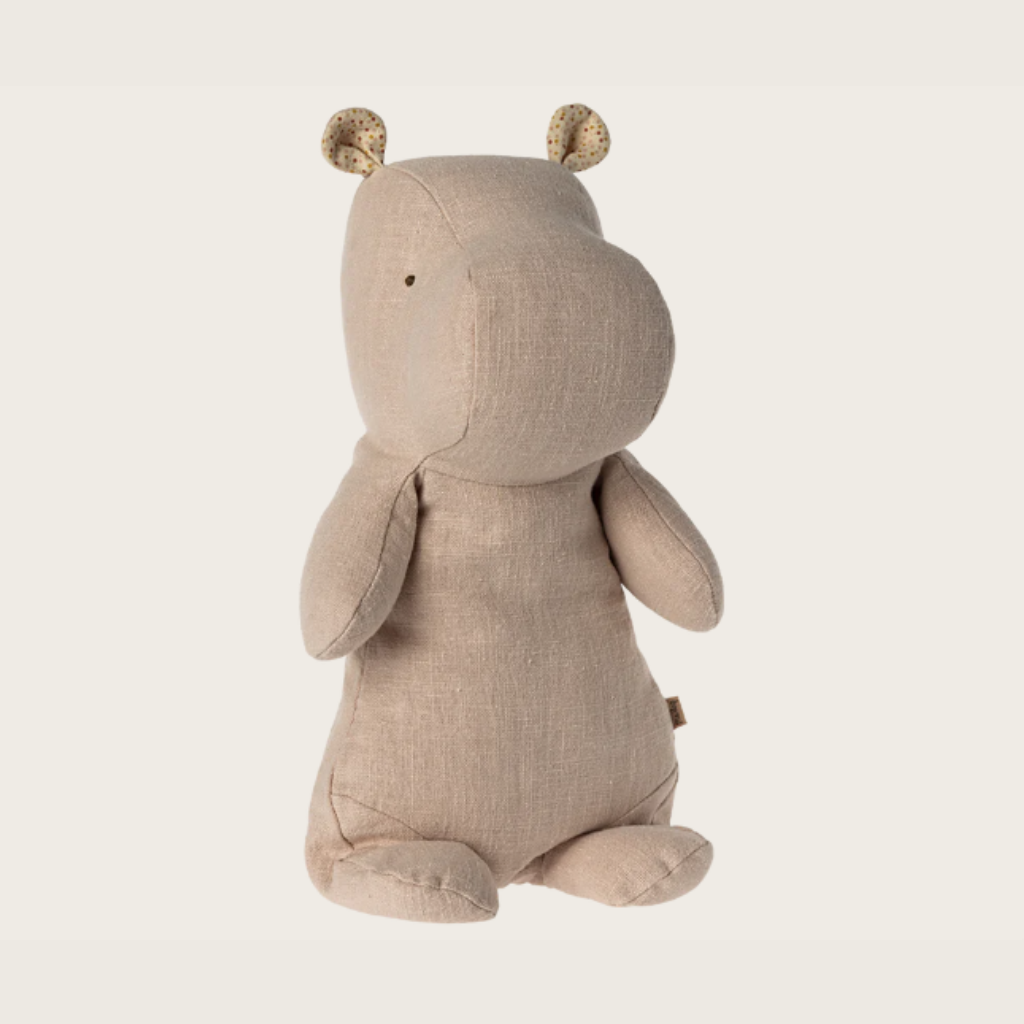 Maxi doudou hippo rose chiné.Ces peluches, prêts à être câlinés, sont conçus avec des tissus tous doux et dans de superbes couleurs. Dotés de microbilles à l'intérieur, au niveau de l'assise, ils peuvent s'asseoir seuls.