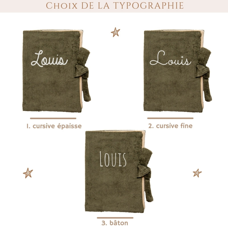 Protège Carnet de Santé Personnalisable Velours Côtelé Kaki - Oh La La Paris