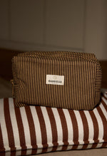 Trousse de toilette imprimée rayures café. Parfaite pour glisser dans sa valise d'été:  on adore son grand format ;).