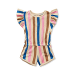 Rayons éclatants ! Cette combinaison à volants et rayures sésame lumineuses dynamisera instantanément vos moments de jeu. Que ce soit pour une partie de padel, des jeux endiablés dans le jardin ou des séances de danse improvisées, cette combinaison est faite pour s'amuser.