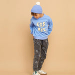 Ce sweat-shirt bleu outremer apporte une belle touche de couleur à l’hiver. Fabriqué en 100 % coton biologique, il est décoré d’un imprimé « Cosmic » en tissu éponge, à la fois original et plein d’énergie. Confortable et facile à porter, il deviendra vite un favori de la saison.
