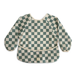 Le bavoir imperméable doté de manches longues est idéal pour protéger les vêtements au moment des repas. On craque pour son imprimé Damier Vert et Blanc.