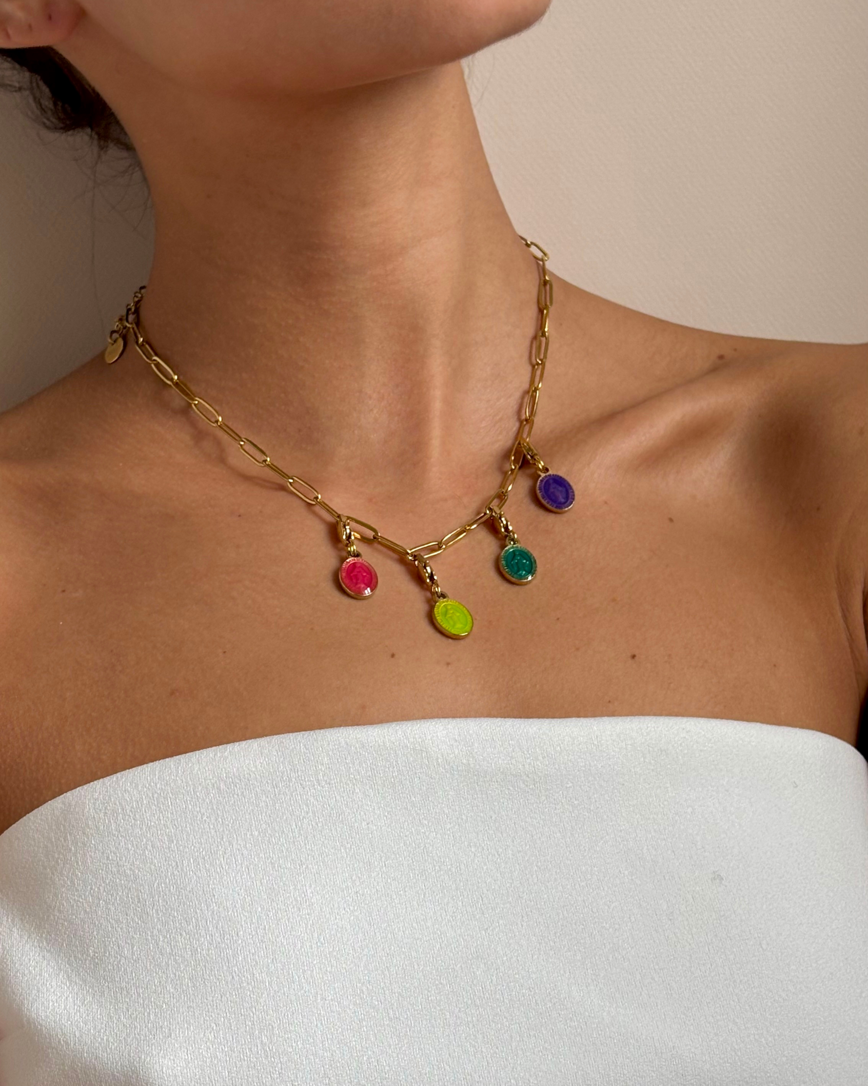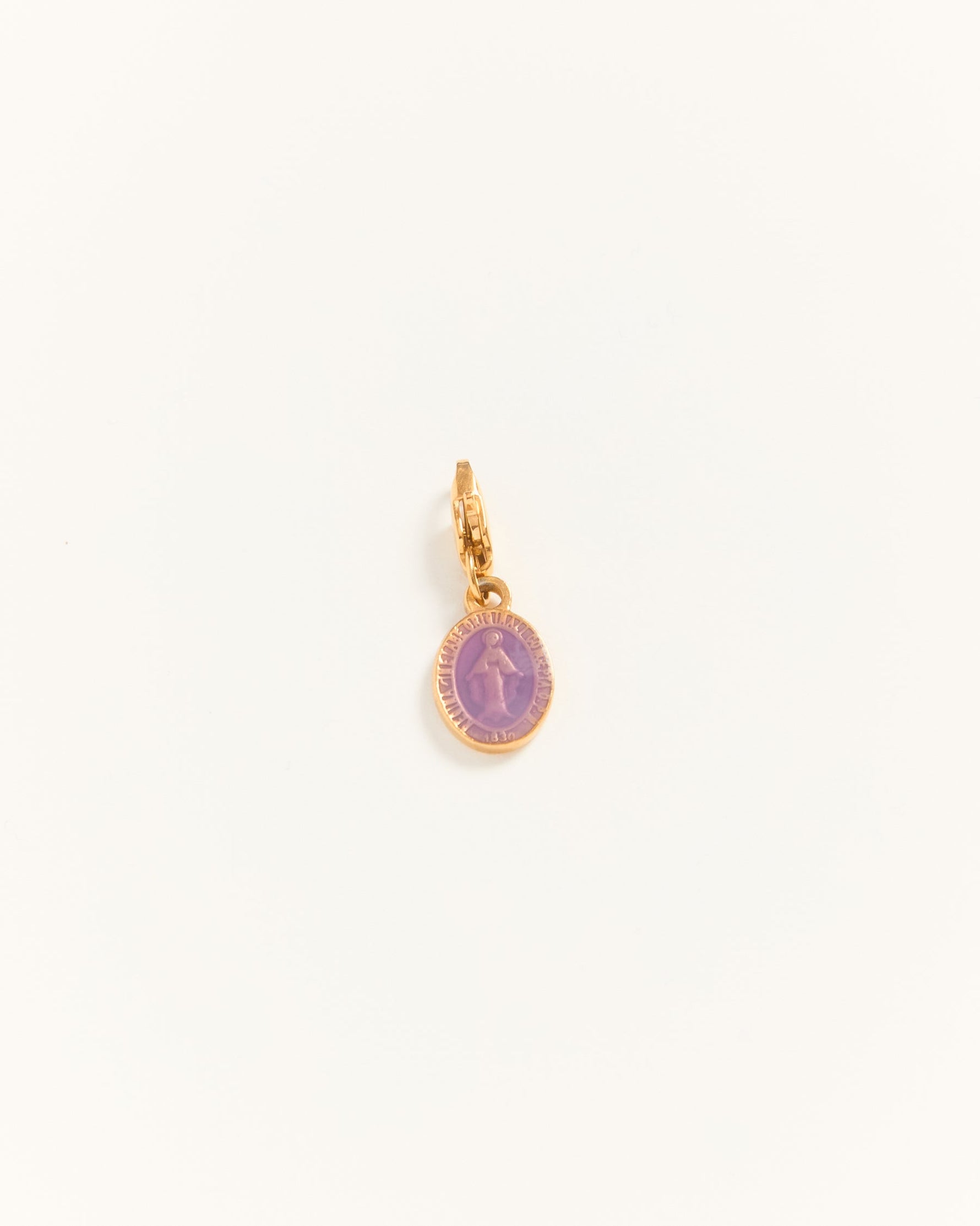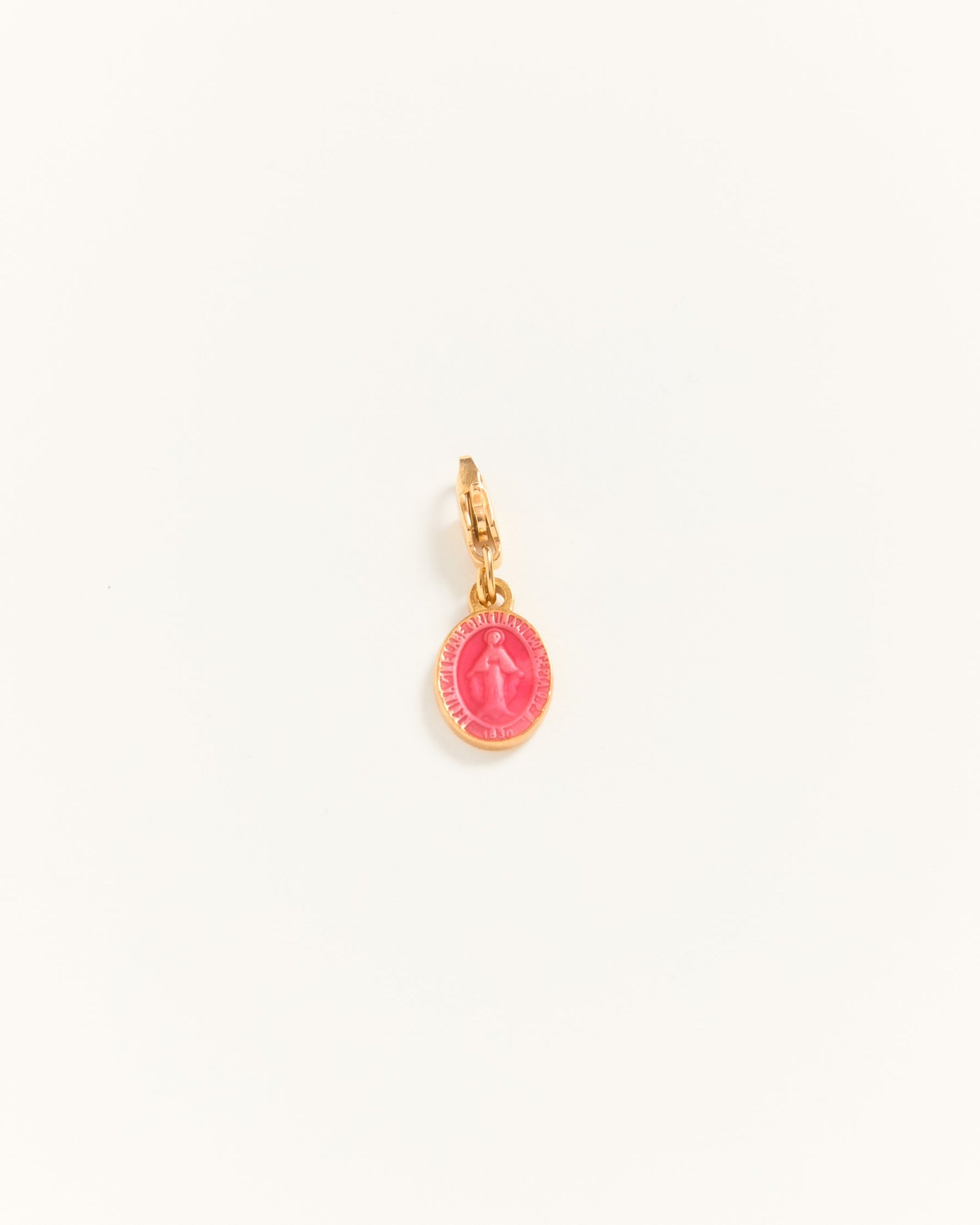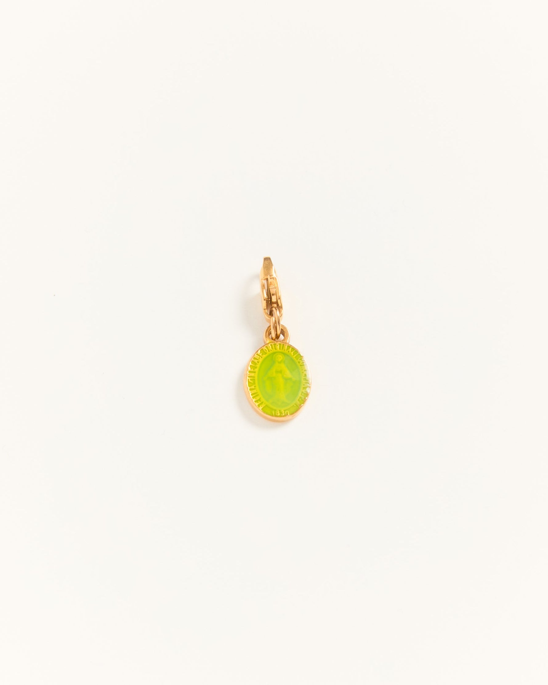 Une touche de couleur sous la forme d’un pendentif ensoleillé. Ces charms mini Madonne reprennent les codes de la médaille miraculeuse tout en les modernisant. Ces pendentifs vernis s’attachent volontiers à un bracelet ou un collier, en fonction de vos envies.