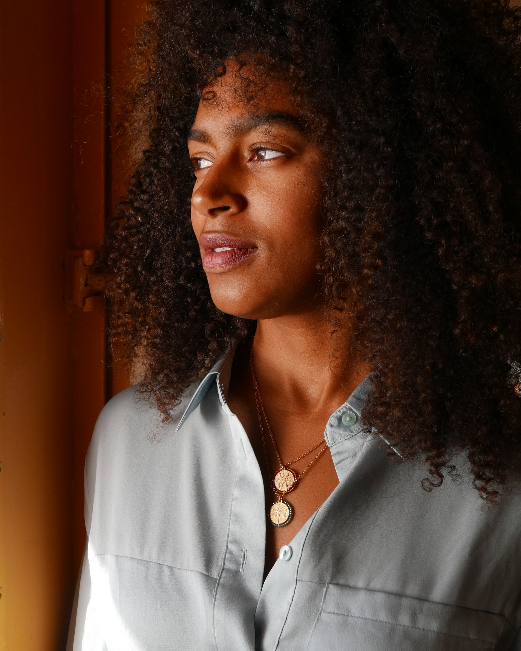 Le collier Belamar en acier inoxydable doré, c’est le soleil et les palmiers à votre cou, peut importe la météo. Une touche lumineuse pour toutes vos tenues. Un collier médaille orné de pierres semi-précieuses qui ne décolore pas (promis) !
