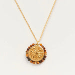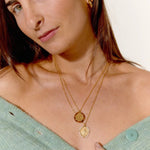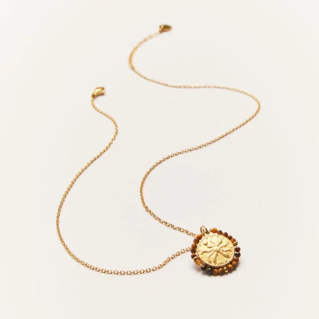 Le collier Belamar en acier inoxydable doré 18 carats, c’est le soleil et les palmiers à votre cou, peut importe la météo. Une touche lumineuse pour toutes vos tenues. Un collier médaille orné de pierres semi-précieuses qui ne décolore pas (promis) !
