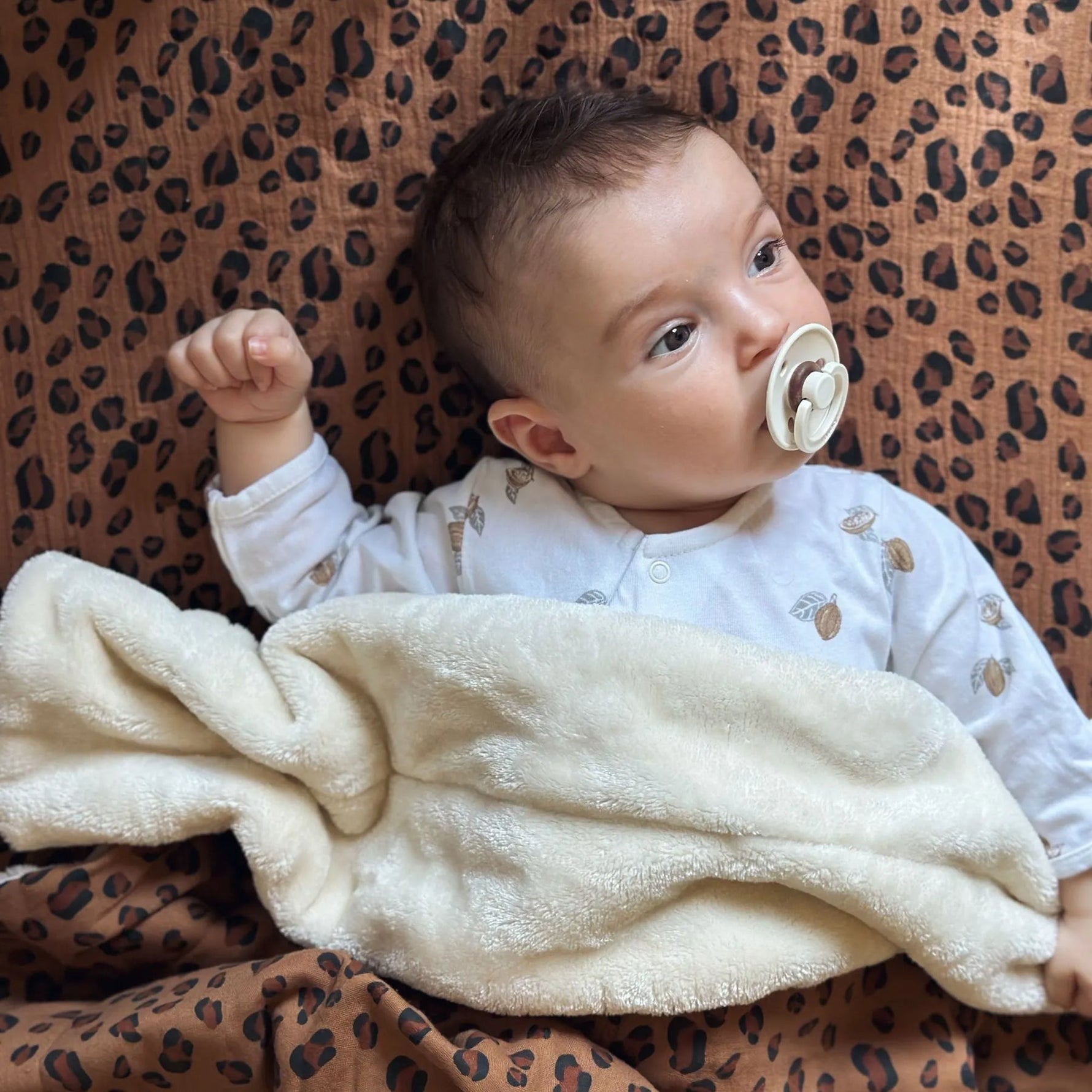 La couverture Snuggle Bengal Bonjour Little allie douceur et confort avec son côté en gaz de coton imprimé et son verso en velours tout doux certifié Oeko-Tex. Moelleuse et chaleureuse, cette couverture est le cadeau parfait pour une naissance, apportant une touche douce et élégante grâce à son imprimé Bengal.