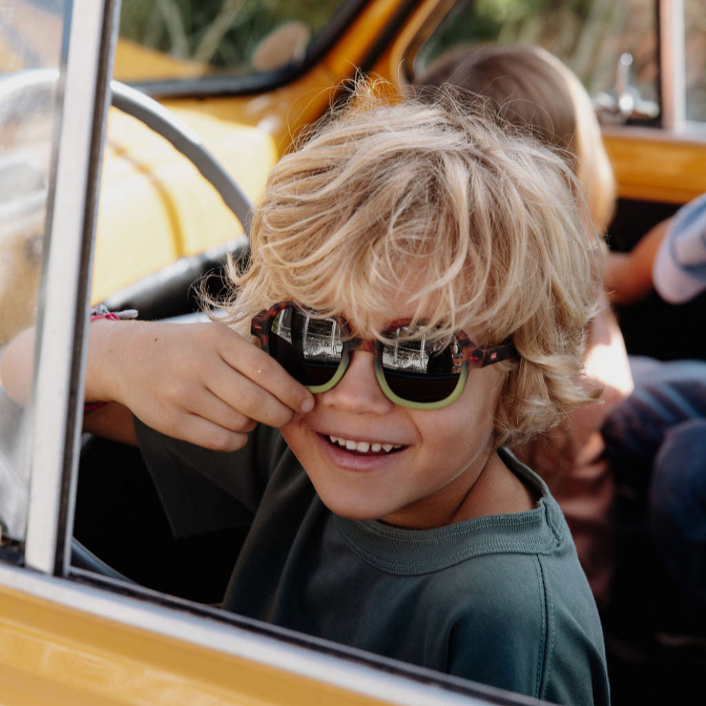 Les Lunettes de soleil pour enfants, Koody Craky Khaki, sont à croquer, craquer, découvrir. Modèle unisexe, lunettes bicolores, lunettes écailles pour kids, couleur khaki, forme ronde, verres catégorie 3, protection UV400. Le top !