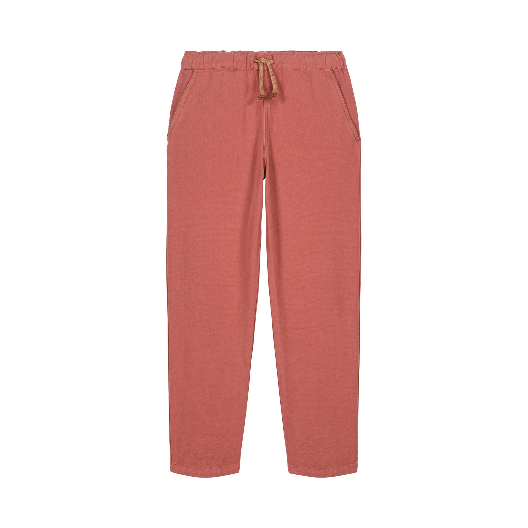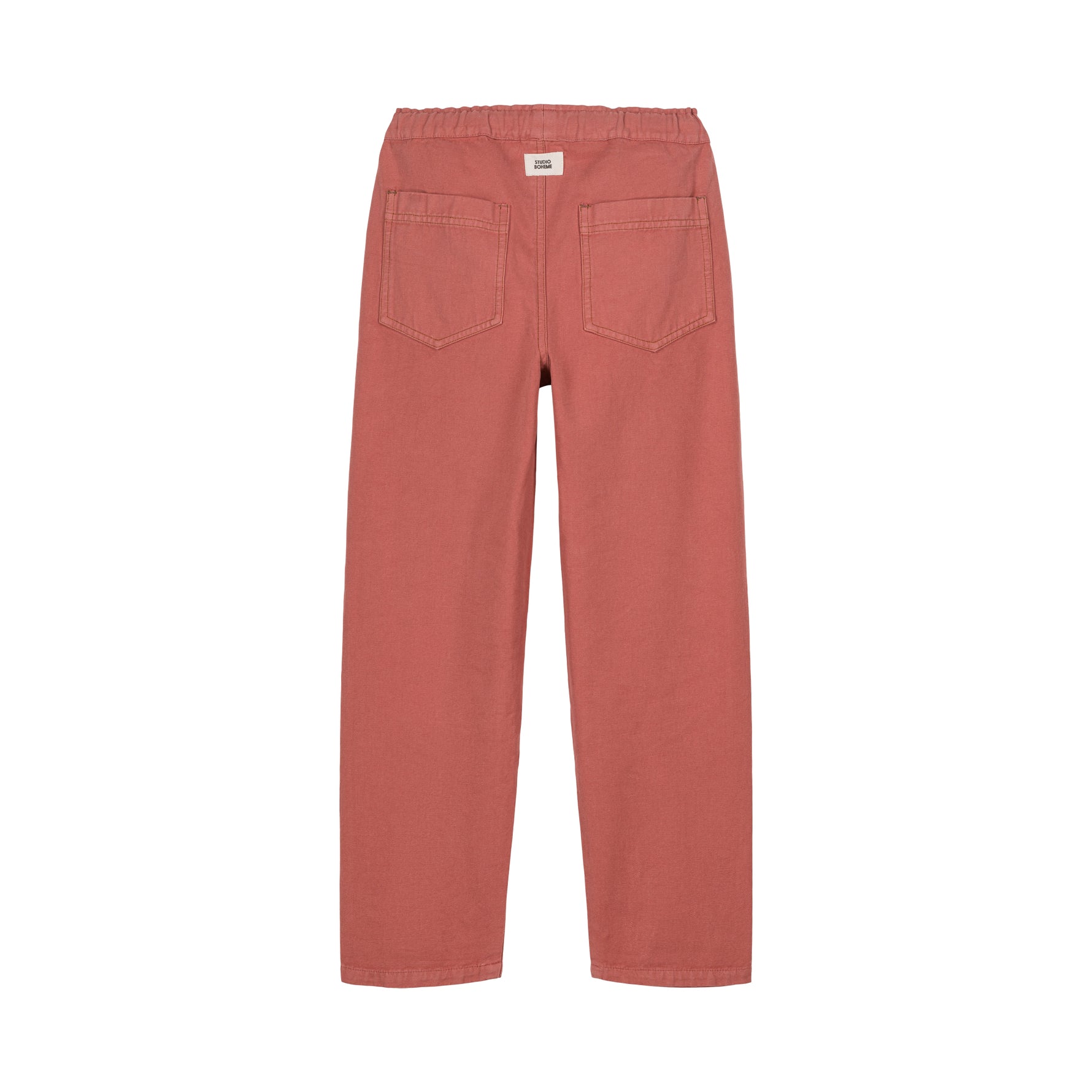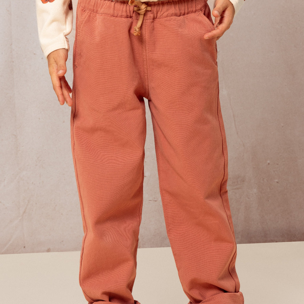 Pantalon mixte en sergé de coton biologique avec coutures contrastantes.