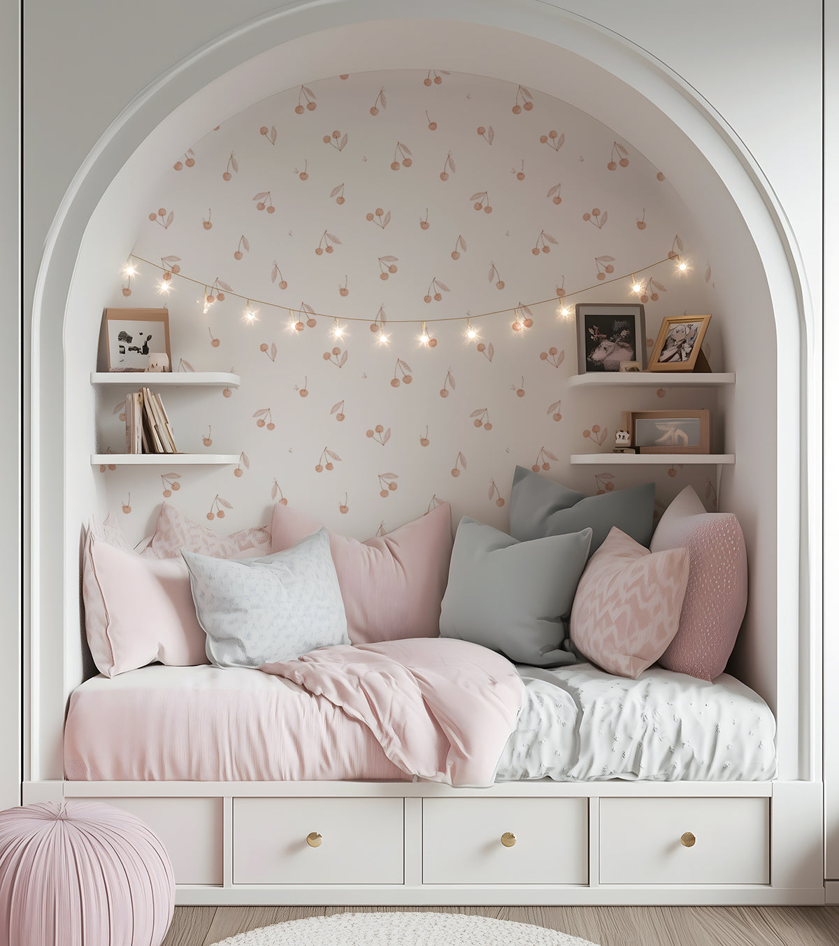 Apportez une atmosphère douce et poétique à la chambre de votre petite fille avec notre papier peint chambre fille au motif cerise rose. Ce papier peint intissé facile à poser sublimera les murs avec ses touches délicates de rose pastel et rouge tendre, créant un décor chaleureux et fruité.