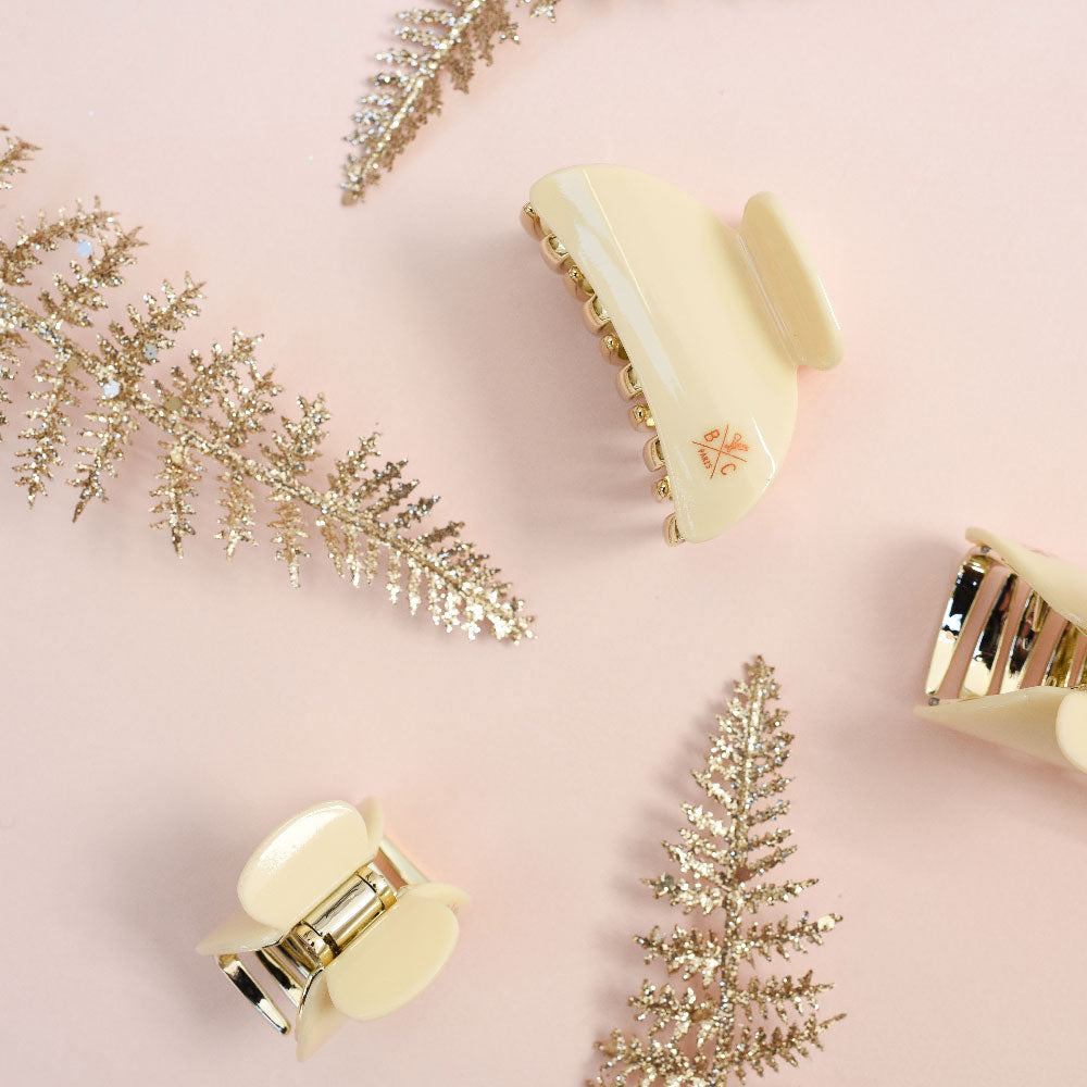 Déclinée en ivoire et doré, elle devient un vrai bijou de cheveux.