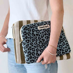 Pochette Ordinateur Octave Rayé Olive Greige - Rose In April