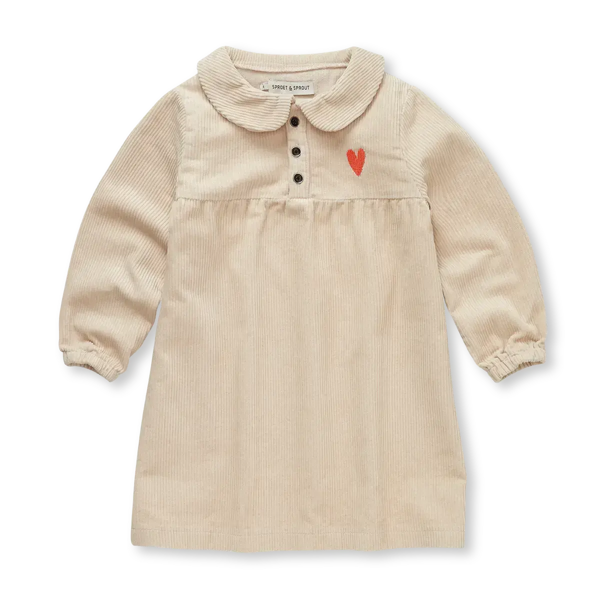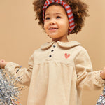 Un charme intemporel pour cette robe en velours côtelé beige, confectionnée en coton doux. On craque pour sa délicate broderie cœur sur la poitrine et sa coupe élégante, avec col rond, patte de boutonnage et taille empire froncée. Elle se porte aussi bien pour une occasion spéciale que pour un look décontracté.