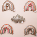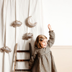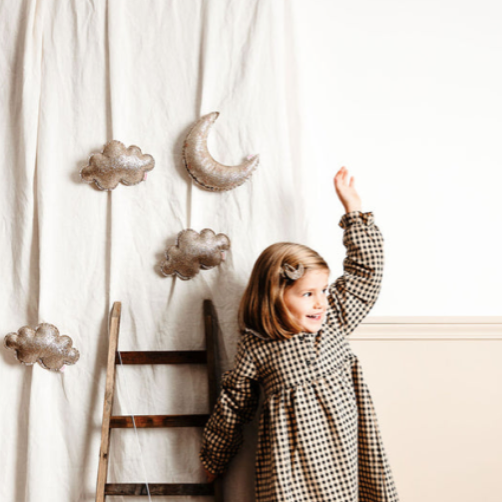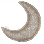 Ajoutez une touche de magie à vos murs avec cette très jolie lune pailletée. Très facile à suspendre grâce à un petit ruban cousu au dos.