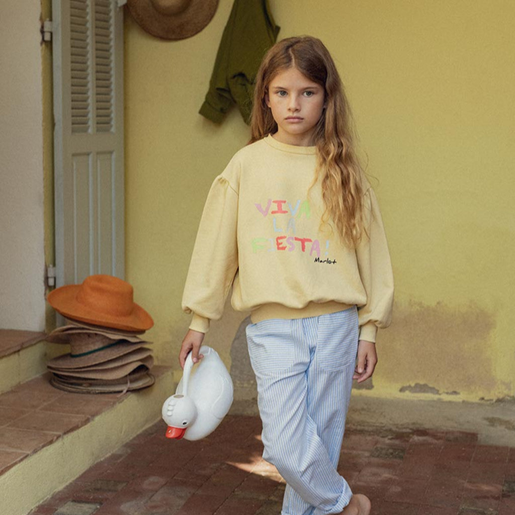 Le sweat Bueno est une pièce intemporelle et ludique, parfaite pour les petites filles en quête de confort et de style. Confectionné en 100% coton molleton, il combine douceur, qualité et praticité. Son design unique, avec l’imprimé coloré "Viva la Fiesta!", apporte une touche de gaieté italienne et de fun à toutes les tenues. Avec sa teinte avoine douce et élégante, ce sweat s’accorde facilement avec un pantalon, un legging ou une jupe pour des looks variés et modernes